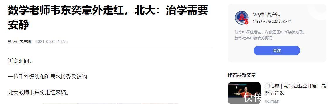 2.数学老师韦东奕意外走红,北大:治学需要安静——新华社客户-06-03